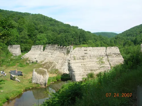 The Austin Dam was never reconstructed, and remnants of the structure stand today in the same position as when the dam failed over a century ago.