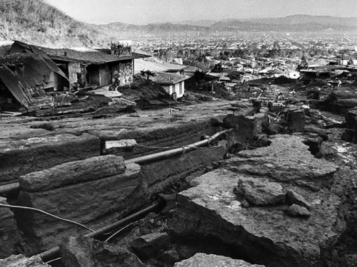 The Baldwin Hills Reservoir was constructed in 1951 to provide water to the south and southwest portions of the city of Los Angeles, California. Sitting atop one of the tallest hills in the region, the reservoir was confined on three sides by compacted earth dikes and the Baldwin Hills Dam on the northern fourth side. The Baldwin Hills Dam reached a height of 232 feet and stretched a total of 650 feet in length. At 3:38 P.M. on December 14, 1963, the Baldwin Hills Dam breached releasing a majority of the reservoir’s 250 million gallons of stored water. The sudden release resulted in the death of five people and approximately $11 million in property damage.