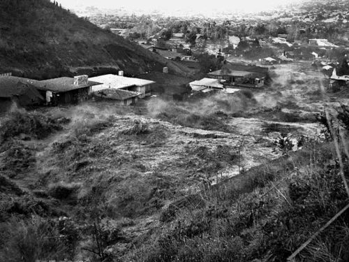 Around 11:15 A.M. on December 14, 1963, during a routine daily inspection, the reservoir’s caretaker noticed that water had begun draining from the pipes beneath the asphalt membrane liner. Concerned by the unusual circumstance, the caretaker and the operating engineer engaged the outlet works designed to lower the reservoir in emergency situations. Because the reservoir would take approximately 24 hours to drain safely and completely, the Los Angeles Department of Water and Power (LADWP) asked that police execute an evacuation downstream. Within four hours of the initial signs of danger, approximately 1,600 downstream residents had been evacuated from their homes.