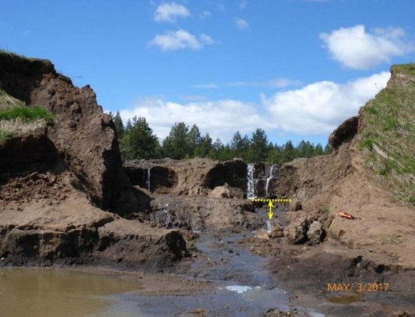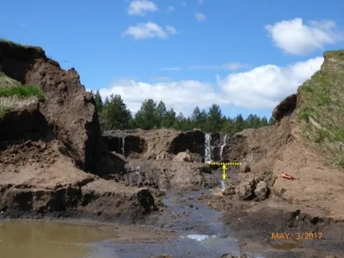 Maximum late-winter snowpack (April & May) is typically 3.9 inches deep with a 20 percent water content of 0.78 inches. A review of precipitation records indicated approximately 0.63 inches of precipitation fell during the 14 days prior to the breach with the most intense rainfall being approximately ¼ inch over a few hours on the day of the breach.