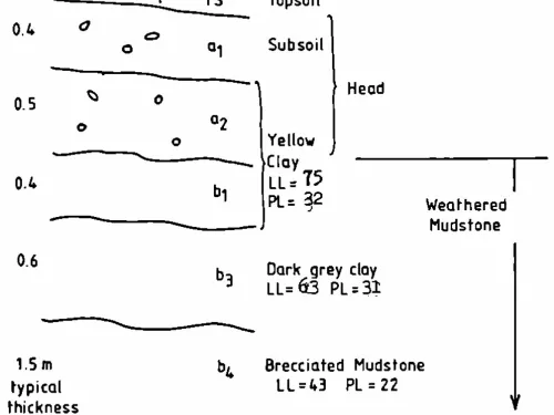 From the start, the original Carsington Dam’s geotechnical design fell far short of the standard of care. The designers generally followed the typical design of an embankment dam – clay core, inner and outer shoulders, drainage features, etc. – and incorporated some standard geotechnical features, such as grout curtains and uplift wells for seepage control. However, the team insufficiently considered several other key geotechnical factors. The site subsurface investigation found roughly 6 feet of highly plastic yellow clay beneath the topsoil, but the designers never specified that this potentially problematic material needed to be removed from the dam’s footprint. Nor did they note that the yellow clay contained shear surfaces from historical solifluction (slope creep induced by freeze-thaw cycles) at the site. The design team conducted only minimal lab testing before choosing material parameters that pushed, and in some cases overstepped, the limits of appropriate conservatism. This was especially concerning since the designers included an unconventional extended toe, called a “boot,” in the upstream side of the dam’s clay core. This boot created a region in the dam within which slip surfaces were more likely to form, but the design team did not rigorously evaluate probable slip surfaces through it. In fact, evidence suggests that critical slip surfaces within the dam were never systematically assessed. Neither, apparently, was the potential for progressive shear failure within the structure [3, 7, 9, 12].