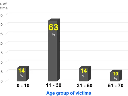 The majority of the victims (approximately 90%) are male. No meaningful trend could be observed pointing to the age of the victims or the time of year other than the fact that no incident occurred during the winter months between January and March, and that the months of May and June had the highest number of incidents.