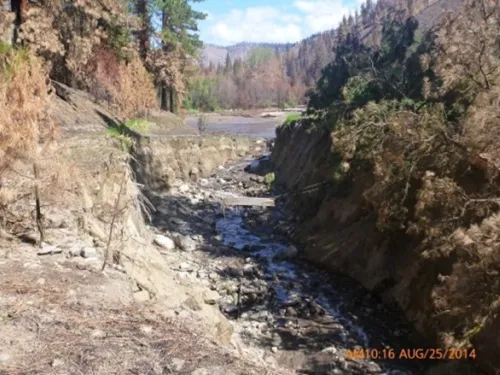 In mid-July 2014, lightning started several forest fires that eventually combined to form the Carlton Complex Fire. The Carlton Complex Fire eventually burned more than 256,000 acres in southwest Okanogan County, one of the largest forest fires in Washington State history. The burned area included most of the Finley Canyon watershed and the downstream Benson Creek Watershed. On the evening of Thursday, August 21, 2014, starting at about 6 pm, the sub-basins within the Benson Creek watershed received from 0.4 to 0.9 inches of rain in a one-hour period and 0.8 to 1.0 inches in slightly over 2 hours. High runoff flows and numerous mudslides occurred throughout the area. By Friday morning, State Highway 153 was closed 6 miles south of Twisp, two of the five dams in Finley Canyon had failed, and a third dam had partially failed.