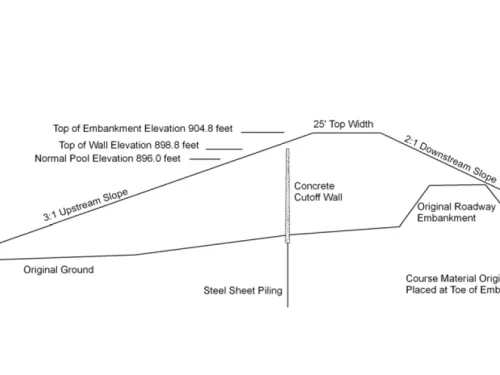 In addition to the maintenance issues at the dam, design deficiencies also became apparent after its failure. As previously mentioned, the embankment section of the composite dam was strengthened by installing a concrete core wall. However, the wall did not reach either the maximum height of the embankment or the maximum flood elevation. This design oversight allowed the internal erosion of the embankment that contributed to its failure.