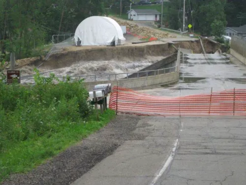 Record rainfall and flooding impacted the state of Iowa during July of 2010. As a result, the area draining to Lake Delhi Dam received approximately 10 inches of rain over the course of 12 hours. This caused overtopping of the dam and its eventual failure on July 24, 2010. Due to the immediate action of state officials and emergency personnel, a large number of downstream residents were evacuated and loss of life was avoided.