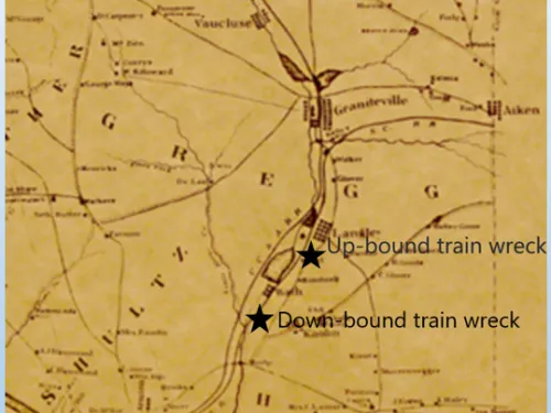 The water released by the failure of Langley and the next dam downstream, Bath, moved downstream and encountered the tracks of the South Carolina Railroad near the intersection with Horse Creek. At almost exactly the same time as the flood waters reached the track, a mixed train (passengers and livestock) that had departed Augusta, GA at 10:07 p.m. bound for Charleston began to cross the tracks below Langley. The engine and livestock cars were washed off the tracks but miraculously the two passenger cars were unharmed even though the tracks in front and behind them were eventually completely inundated.