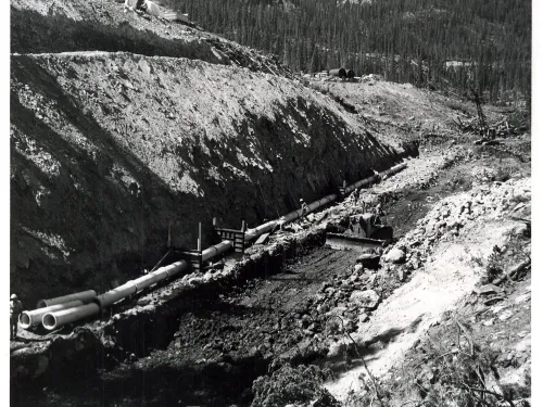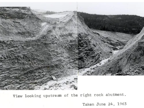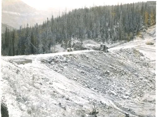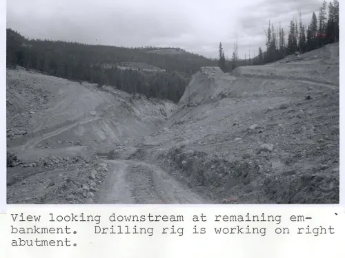 Inclement weather and difficult working conditions continued until October 26, 1961, when the Contractor asked for a winter shutdown and work on the dam was halted. In order to minimize storage due to runoff, it was decided that the gate for the low-level outlet would not be installed. The shutdown was timely as heavy snows began on the night of October 26. By the next day, the road to the project was closed due to snow.