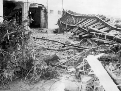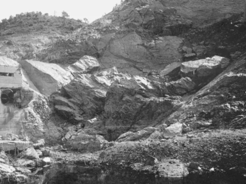 Malpasset Dam was a concrete arch dam located on the Riveria in the Cannes District near Fréjus, in Southern France. Exhibiting curvature in both the plan and section directions, the double-curvature arch structure spanned the Reyran River. At the time of completion in 1954, it was reported as the thinnest arch dam of its height (218 feet) with a maximum thickness of 22.2 feet. The dam was equipped with one un-gated, notched spillway at the center of its 736-foot-long crest. Because the planned left abutment of the dam (from an upstream perspective) was higher than site topography, a large dihedral thrust block was placed below the dam to raise it to the necessary height. Construction of the dam began in 1952 and the first filling of the reservoir began on April 20, 1954. Approximately five years later, when the first filling was nearly complete, Malpasset Dam failed on December 2, 1959 after the area experienced several days of heavy rain and high winds. The sudden failure of the dam resulted in the death of 421 people when emergency rescue attempts were thwarted due to the inaccessibility of the town’s flooded roadways and access routes.