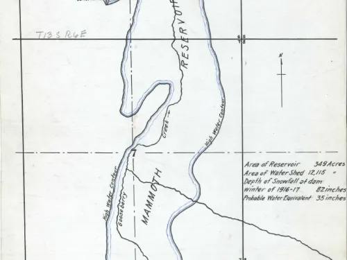 Today a smaller reservoir, Lower Gooseberry, exists about one half mile upstream of the Mammoth Dam site. You can still visit the site of Mammoth Dam and view what remains of the intake tower, core wall, and outlet conduit. In 1929, Scofield Reservoir was built several miles downstream to replace the storage lost when the Mammoth Dam project failed.