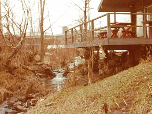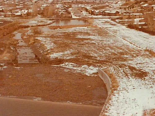 During a routine inspection of the Fabridams on March 17, 1979 around 11:45 PM, personnel of the CMWC noticed one of the Fabridams was collapsing and allowing water in the reservoir to be suddenly released down the spillway. The CMWC personnel immediately contacted the Wheat Ridge Police Department, who began evacuations of approximately 2,000 people from residential units along Lena Gulch in the 2.3 mile river reach immediately below the dam. Approximately 100 acre-feet of water was released during a period of about 2.5 to 3 hours before the spillway flows ceased, lowering the reservoir by about 3 feet. The peak flow immediately below the reservoir was estimated to be 600 cfs and caused residential basement flooding, first floor damage in some commercial buildings, bank erosion, and damage to streets and culverts. No life loss was reported and all evacuated individuals were allowed to return to their homes at 4:20 AM on March 18, 1979.
