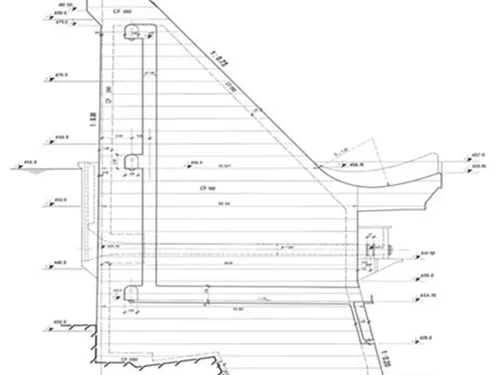 - A new bridge with a 60-meter span was constructed approximately 25 meters downstream of the site to allow passage across the valley. This allowed for the existing bridge located on top of the dam to be removed and for the previous spillway with 13 openings to be converted into an unbroken 80-meter outlet.