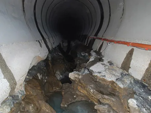 Due to the high concentration of suspended solids in the inflow from the Melezza River, extensive abrasive damage occurred to the bottom of the upstream diversion tunnel. Significant spillway upgrades to the project resulted as part of the incident response which included: