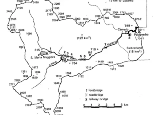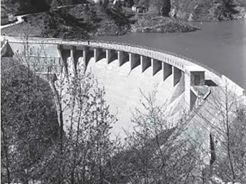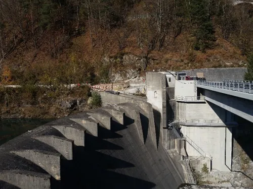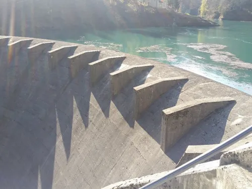 - Swiss Authority responsible for the security of large dams requested that the spillway be redesigned to take into consideration the 37 annual flood records in the Melezza River. The new spillway would have a capacity of 2200 cubic meters per second (nearly five times its original capacity).