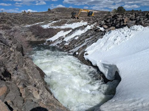 With short-term operations addressed, engineers turned to long-term repair of the dam. An evaluation of the existing dam was performed and alternatives to rehabilitate the dam were developed. Ultimately, it was decided to construct a new roller compacted concrete (RCC) dam downstream of the existing dam. The new RCC dam design protects against future ice loading by widening the crest, providing sufficient concrete to resist anticipated forces. Additionally, to protect the control gate’s hydraulic lines and the outlet’s air vent from damage due to ice they will be embedded within the concrete of the dam. The design was finalized and construction of the new dam began in the summer of 2025.