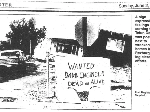 Teton Dam was located in southeastern Idaho about 15 miles from Rexburg in the valley of the Teton River. The dam and its reservoir were the principal elements of the Teton Basin Project designed by the Bureau of Reclamation to control flooding as well as provide a source of hydropower, irrigation, and drinking water. Construction on the Teton Dam, reservoir, and powerhouse began in 1972 and by November 1975 the zoned earthfill embankment was essentially complete with a structural height of 305 feet and a crest length of 3,100 feet. Less than one year later, the dam experienced catastrophic failure on June 5, 1976 during its first filling. Failure of the Teton Dam and subsequent draining of the reservoir caused the deaths of 11 people and approximately $400 million in damages.