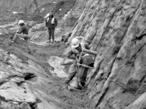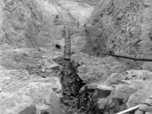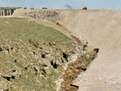 Teton Dam was located in an area with highly permeable foundation materials. During investigation of the failure, it was discovered that proper treatment of such foundation material was not implemented. It appeared that the dam’s designers did not take the site specific geological conditions into account when developing the structure. This oversight was exacerbated by the lack of communication between the design and construction engineers about the proper preparation of the dam foundation. As a result, not only was the foundation treated inadequately, but that treatment was also inconsistent. Although a key trench was constructed in an attempt to prevent seepage through the pervious embankment, the slush grouting at the key trench was insufficient. In addition, slush grouting was inexplicably stopped once El. 5200 was reached. The post-failure review panel also determined that the rock surface at the right abutment was not adequately sealed under the dam’s impervious core. Working together or alone, either of these foundation design deficiencies would have provided optimal conditions for internal erosion of the core.
