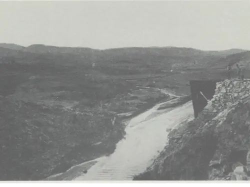 Walnut Grove Dam was constructed at a site approximately 20 miles northeast of Wickenburg, Arizona. Gold had been discovered in the area and a New York Investor, Wells H. Bates, wanted a dam built in order to supply water for hydraulic mining. He acquired the mining rights and then hired William P. Blake, a renowned geologist, to design and construct the dam. Blake worked with his sons on the dam beginning in February 1886. However, he was fired shortly after beginning work. He was replaced by E.N. Robinson a civil engineer from San Francisco. Robinson was unable to salvage any of the construction that Blake had begun and no design documents were available, so he largely started over. One of the aspects Robinson called for was a larger spillway. However, after Robinson had only been on the job for 4 months, he was fired. It is unclear exactly why, but he was then replaced by one of the New York Investors brothers who had no engineering or construction experience.