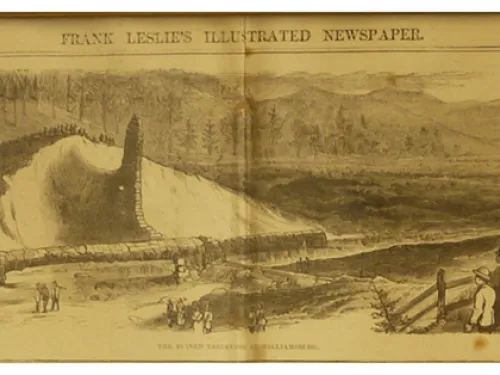 (6) Davis, T.R. (1874). The Mill River Calamity—Bird’s-Eye View of the Devastated Valley [Sketch]. Harper’s Weekly.