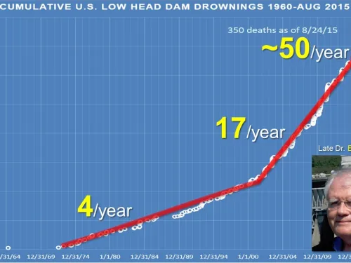 A study by Tschantz from a database of accidents he has collected from 1960s through 2015 reveals at least 282 incidents at dams in 39 states. As a result of these incidents, there have been at least 100 injuries and over 350 drowning deaths. These figures only include accidents obtained by Dr. Tschantz from documented news articles and local officials primarily at low-head dams, the focus of his research. The actual number of accidents are unknown and are believed to be much higher, but collective statistical data is lacking. Dr. Tschantz’s research and ongoing research shows a disturbing trend that the number of documented accidents at dams in the U.S. is increasing rapidly. These statistics demonstrate the need for dam owners and the dam safety community to focus attention on identifying and correcting the hazards created by the dams.