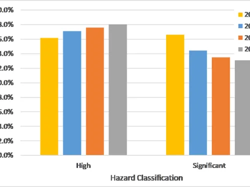 According to the second United States census, the total U.S. population was approximately 5.3 million in the year 1800. The U.S. population has grown to approximately 326 million since then, and is projected to exceed 400 million within the next 40 years. Human population growth has a direct correlation to infrastructure development (e.g. residential structures, commercial/business structures, transportation infrastructure, etc.). As human population continues to increase and infrastructure expands outward from dense city centers to rural and river-front areas, the potential consequences of failure for historically low consequence dams will continue to increase. Hazard creep appears to be evident in the attached chart of National Inventory of Dams (USACE) data from the last decade, which shows a gradual increase in the total percentage of High Hazard dams coupled with a gradual decrease in Significant hazard dams. Based on the U.S. population projections, we can presume that hazard creep will continue to be an issue in the future.